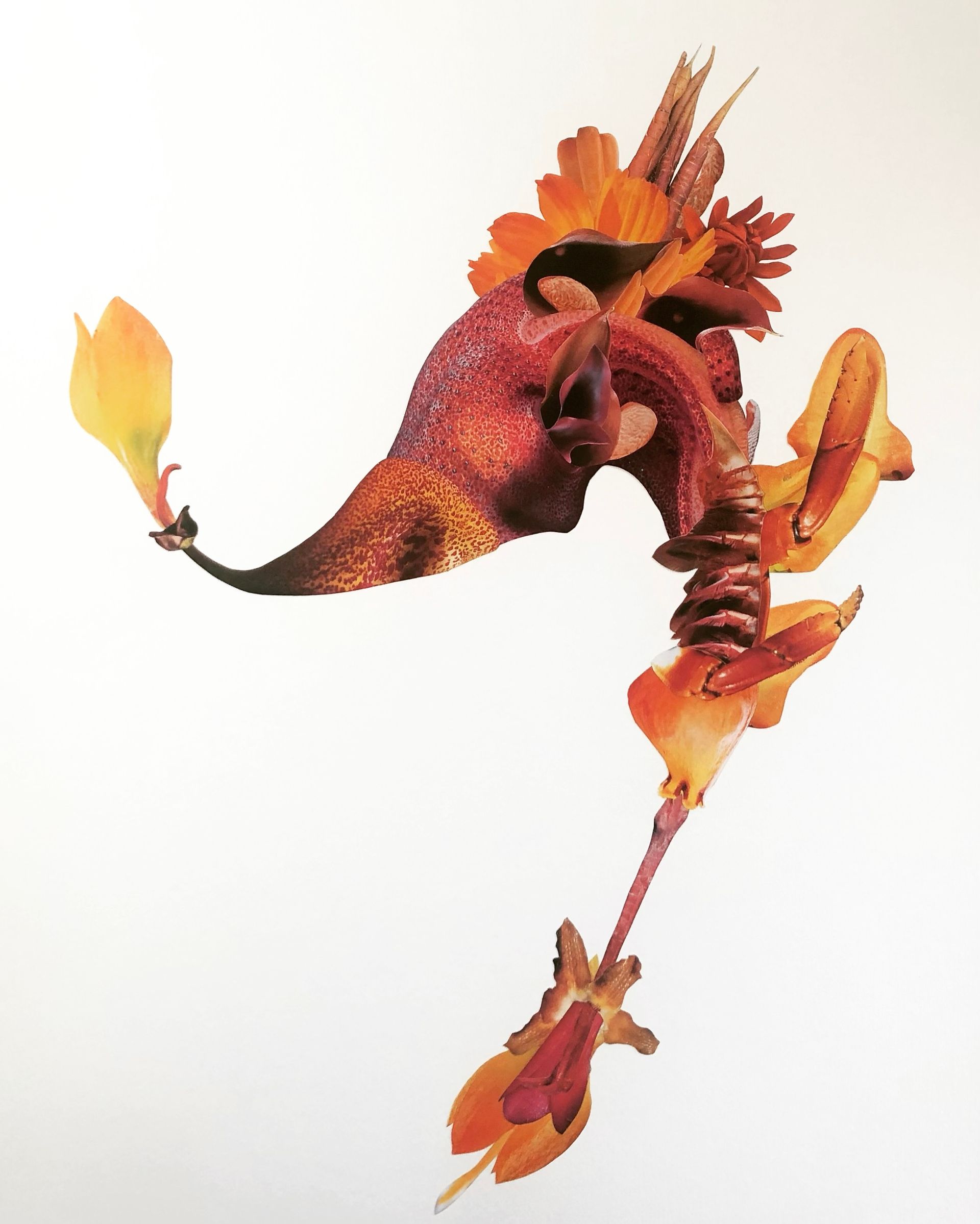 While making collages I see my amazement for nature returning. I discover, in the large pile of pictures that I collect, new creatures myself. After a few days of working on a collage, the creature has developed into a personality. I know how it moves, feels, eats and dances.