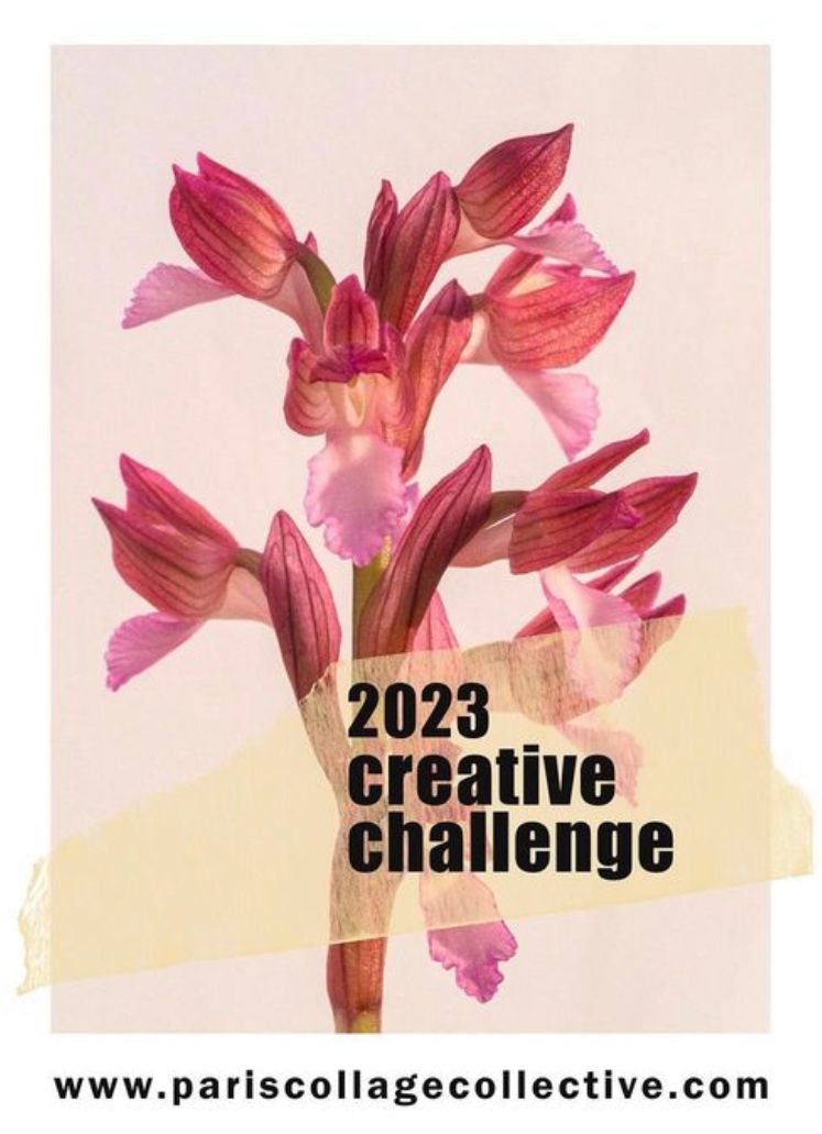 I decided to challenge my comfort zone, and ordered the book Paris Collage Collective 2023, with a weekly challenge. Every body can join, and there are many participants worldwide.